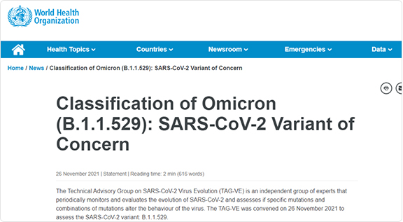 近日,南非、比利時(shí)、英國、澳大利亞、中國香港等地陸續(xù)發(fā)現(xiàn)一種新冠新型變異株B.1.1.529。11 月 26 日,WHO 正式將變異株 B.1.1.529 命名為 Omicron,并定義為令人擔(dān)心的變種(Variants of Concern,VOC),和席卷全球的 Delta 突變株同一級(jí)別。