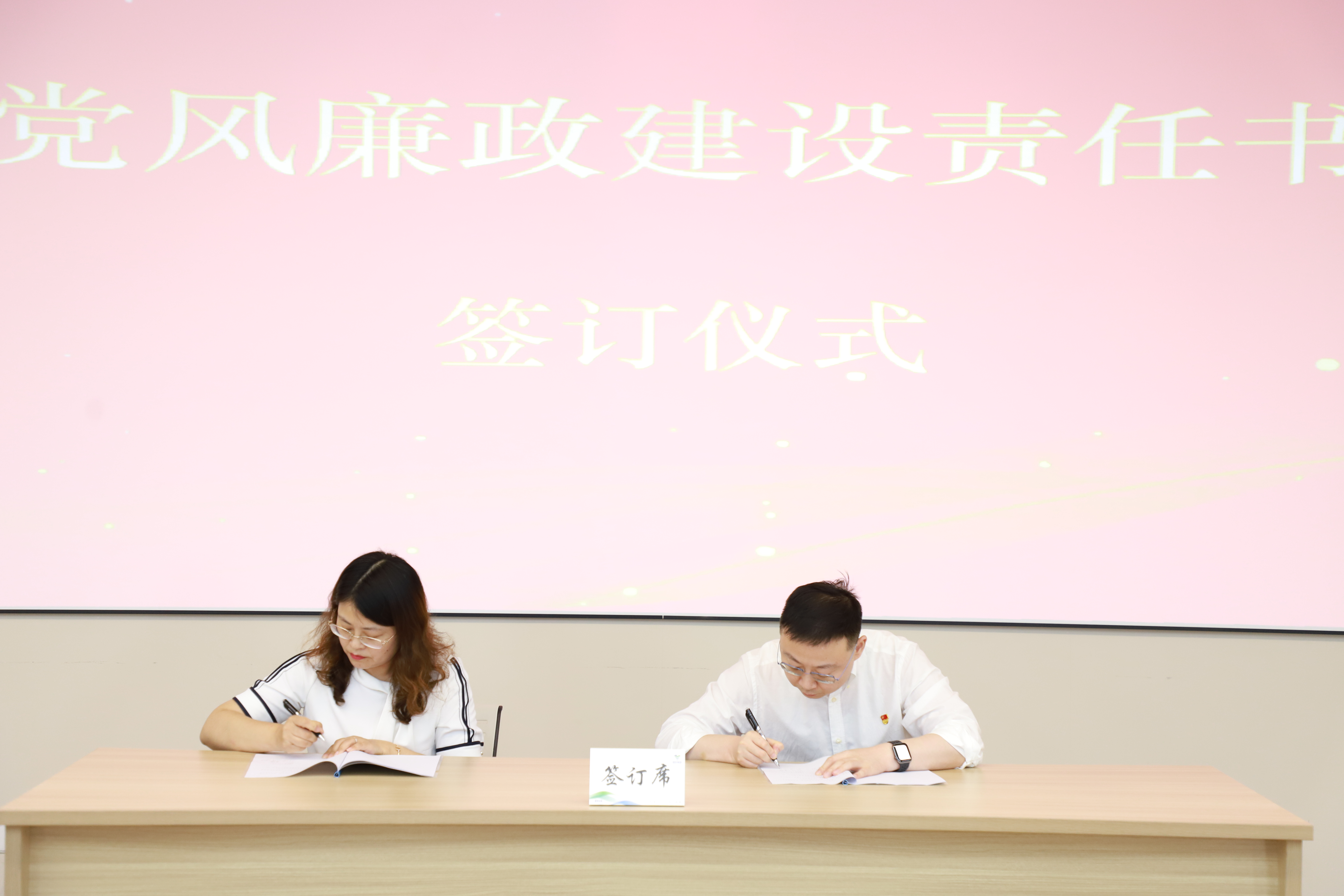 會(huì)議現(xiàn)場(chǎng),黨支部書記、副總經(jīng)理黃迎燕與領(lǐng)導(dǎo)班子成員、重點(diǎn)經(jīng)濟(jì)領(lǐng)域部門負(fù)責(zé)人代表分別簽訂了黨風(fēng)廉政建設(shè)工作責(zé)任書,并組織觀看了警示教育片。
